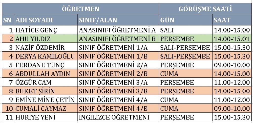 VELİ GÖRÜŞME SAATLERİMİZ